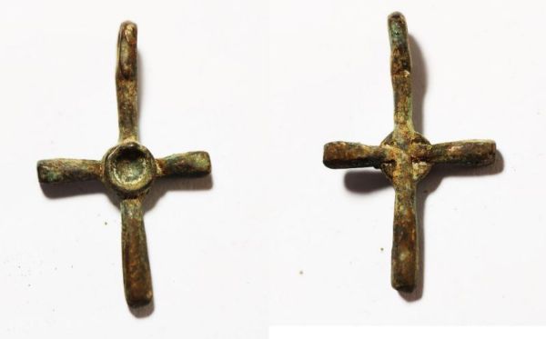 ANCIENT BYZANTINE BRONZE CROSS PENDANT. 800 - 1000 A.D