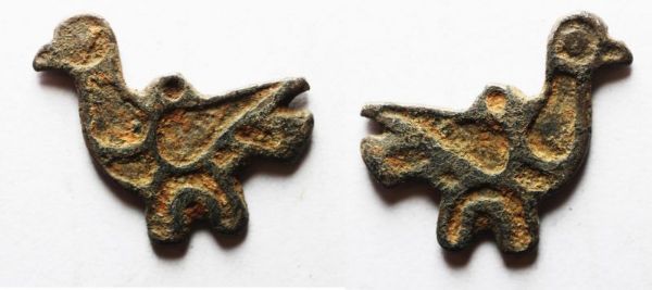 ANCIENT BYZANTINE SILVER PENDANT. DOVE. 800 - 1000 A.D