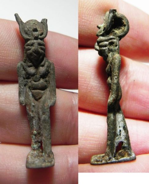 ANCIENT EGYPT . 3rd INTERMEDIATE PERIOD BRONZE ISIS PENDANT. WITH SUSPENSION LOOP.