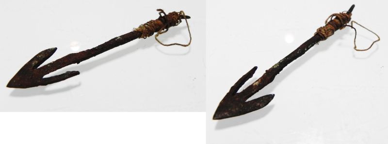 ANCIENT EGYPT . 3rd INTERMEDIATE PERIOD IRON ARROW HEAD . 1070 - 664 B.C. WITH AN ORIGINAL ANCIENT STRING ATTACHED TO IT.