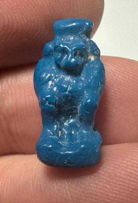 ANCIENT EGYPT.  BEAUTIFUL COLOR. GRECO - ROMAN - FAIENCE BABOON AMULET . 300 B.C - 100 A.D