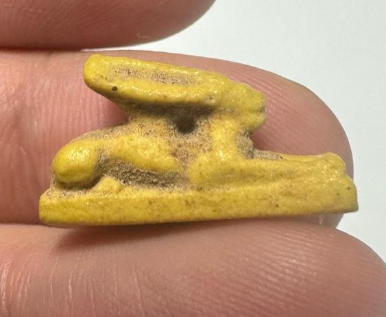 ANCIENT EGYPT. BEAUTIFUL COLOR. GRECO - ROMAN - FAIENCE HARE AMULET . 300 B.C - 100 A.D