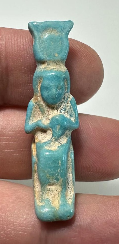 ANCIENT EGYPT. BEAUTIFUL COLOR. GRECO - ROMAN - FAIENCE ISIS NURSING HORUS AMULET . 300 B.C - 100 A.D