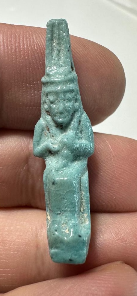 ANCIENT EGYPT.  BEAUTIFUL COLOR. GRECO - ROMAN - FAIENCE ISIS NURSING HORUS AMULET . 300 B.C - 100 A.D