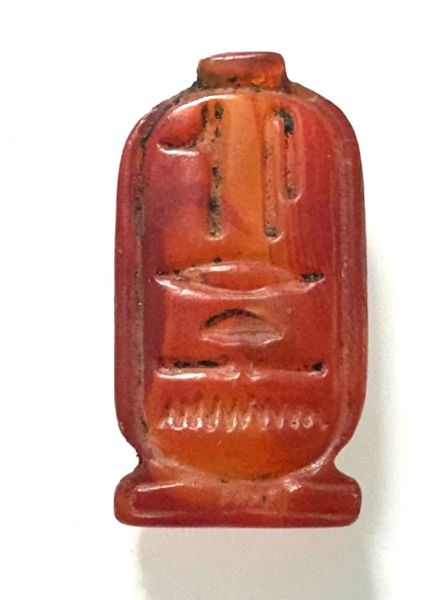 ANCIENT EGYPT. CARNELIAN STONE CARTOUCHE AMULET / PENDANT. WITH THE NAME OF KING SENWORSRET I (EARLY 12TH DYNASTY KING).