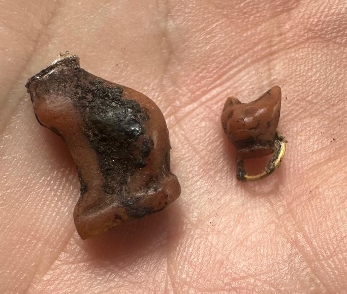 Ancient Egypt. Carnelian Stone Cat with original ancient gold loop . Ptolemaic Period. 3rd century B.C