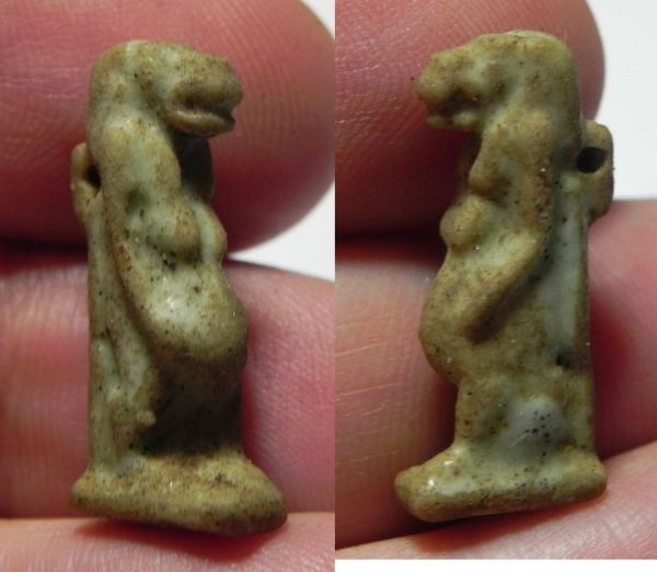 ANCIENT EGYPT , FAIENCE AMULET OF TAWERET. 600 - 300 B.C