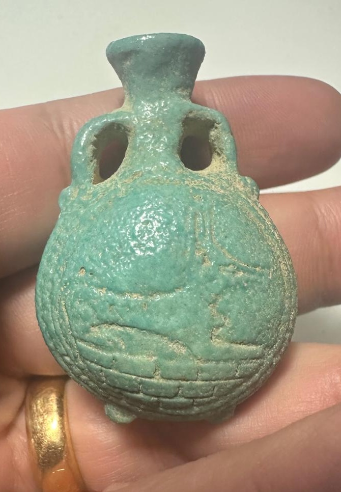 Ancient Egypt. FAIENCE COSMETIC FLASK. BEAUTIFUL COLOR. 300 B.C - 100 A.D . GRECO-ROMAN- NEW YEAR'S FLASK