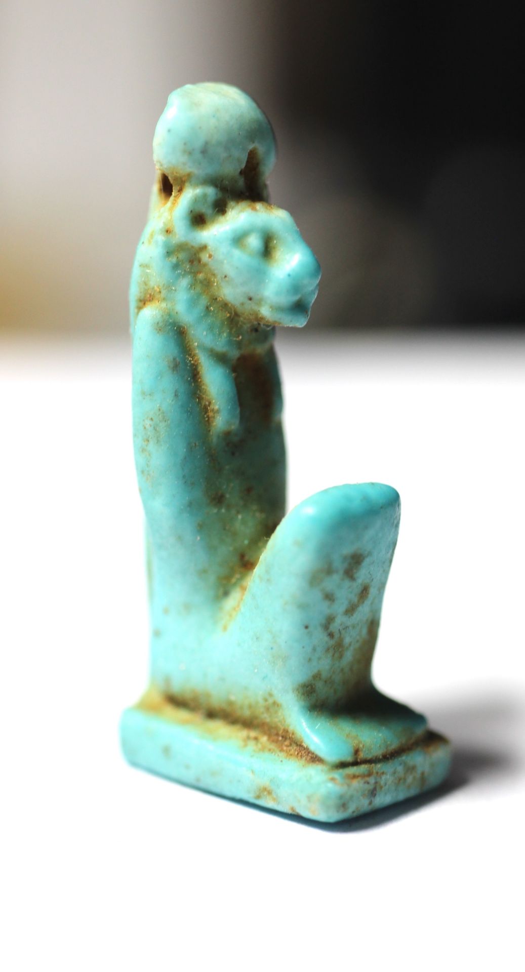 ANCIENT EGYPT FAIENCE LION HEADED AMULET. 600 - 300 B.C