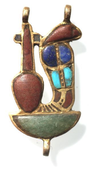 ANCIENT EGYPT. GOLD COBRA (URAEUS) AMULET. INLAID WITH STONES. 1400 - 1200 B.C
