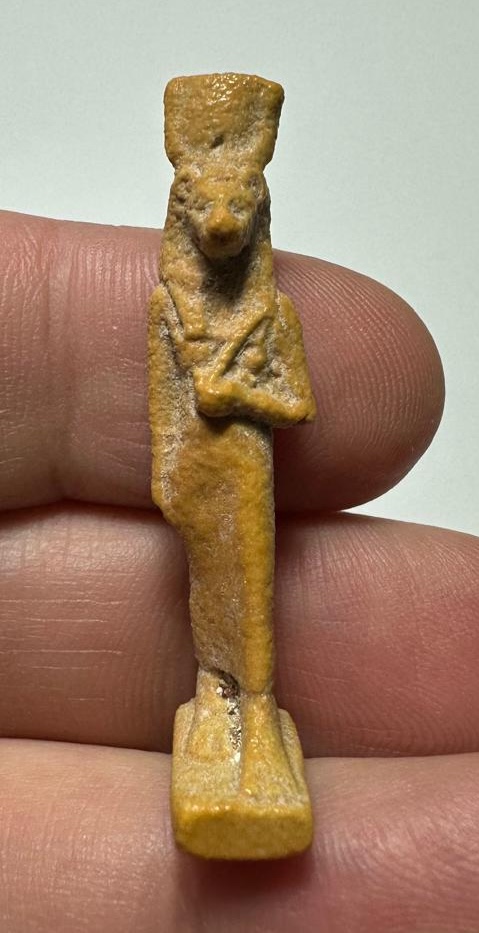 ANCIENT EGYPT. GRECO - ROMAN FAIENCE  AMULET OF A LION HEADED DEITY.  300 B.C - 100 A.D