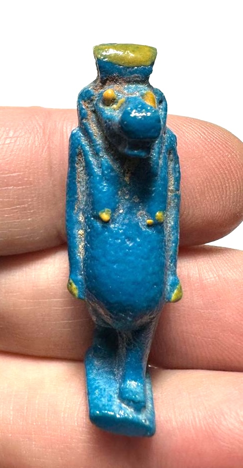 ANCIENT EGYPT. GRECO - ROMAN POLYCHROME FAIENCE AMULET OF TAWERET. 300 B.C - 100 A.D