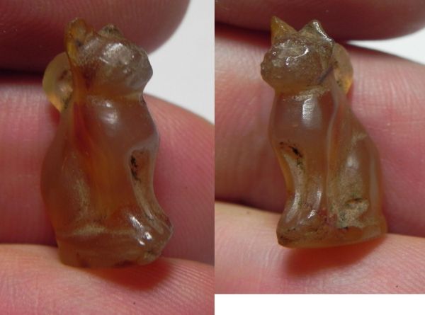 ANCIENT EGYPT, NEW KINGDOM CARNELIAN CAT AMULET. 1400 B.C