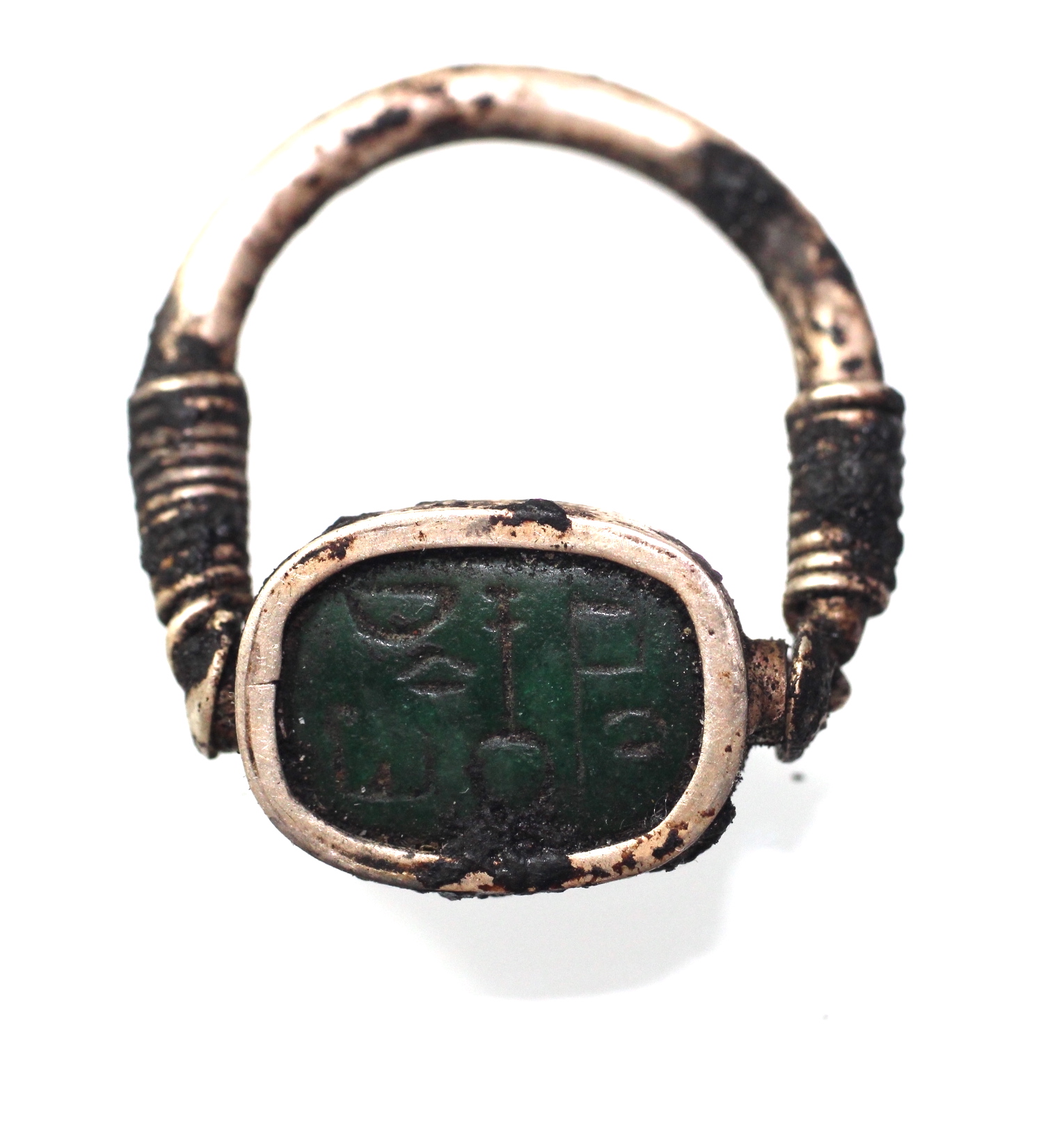 ANCIENT EGYPT. SILVER & GREEN STONE SWIVLE RING. 1250 B.C