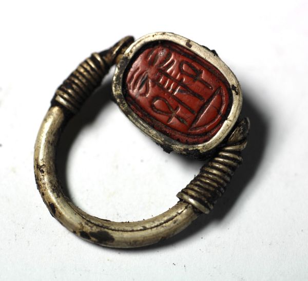 ANCIENT EGYPT. SILVER & RED JASPER SWIVLE RING. 1250 B.C