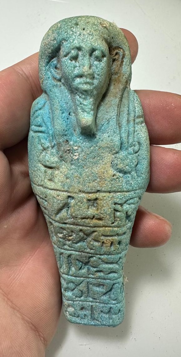 Ancient Egypt. UPPER HALF OF A FAIENCE USHABTI. LATE PERIOD 600 - 300 B.C
