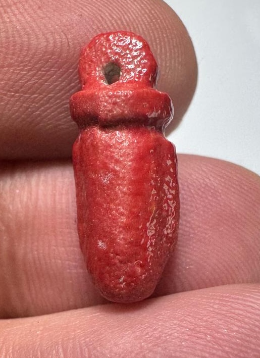 ANCIENT EGYPT. VERY RARE RED COLOR. GRECO - ROMAN FAIENCE HEART AMULET. 300 B.C - 100 A.D