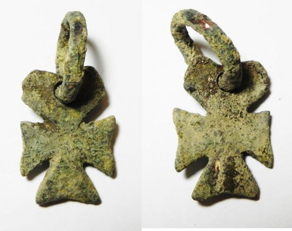 ANCIENT HOLY LAND , BYZANTINE BRONZE CROSS. 600- 800 A.D.