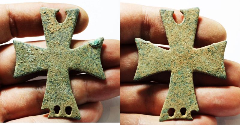ANCIENT HOLY LAND. BYZANTINE BRONZE CROSS. 800 - 1000 A.D