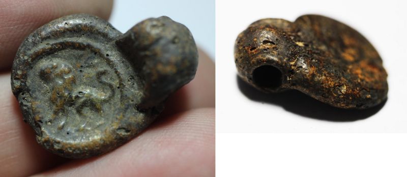 ANCIENT ROMAN GLASS PENDANT WITH A LION 100 - 200 A.D
