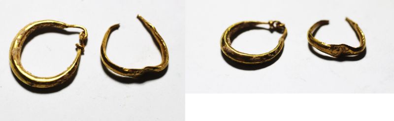 ANCIENT ROMAN GOLD LOT OF TWO. RING AND AN EARRING. 200 - 300 A.D