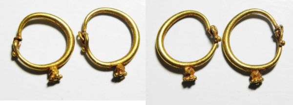 ANCIENT ROMAN PAIR OF GOLD EARRINGS. 100 - 200 A.D