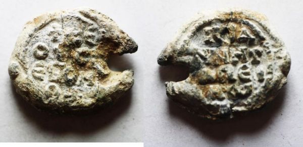 BYZANTINE. 1oth-11th century. Lead bulla (27mm, 12.04g). Obverse: TH