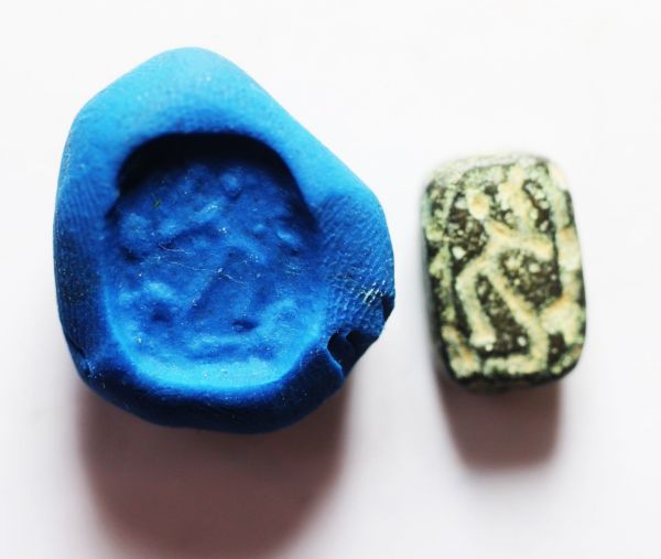 Iron Age II, 7th-6th century BC. Bronze Seal.with a schematic depiction of what appears to be a dancing figure