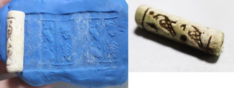 LATE BRONZE AGE. 1400 - 1200 B.C. FAIENCE CYLINDER SEAL.