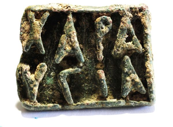 LATE ROMAN/ BYZANTINE. BRONZE BREAD STAMP. Joy [and] Health