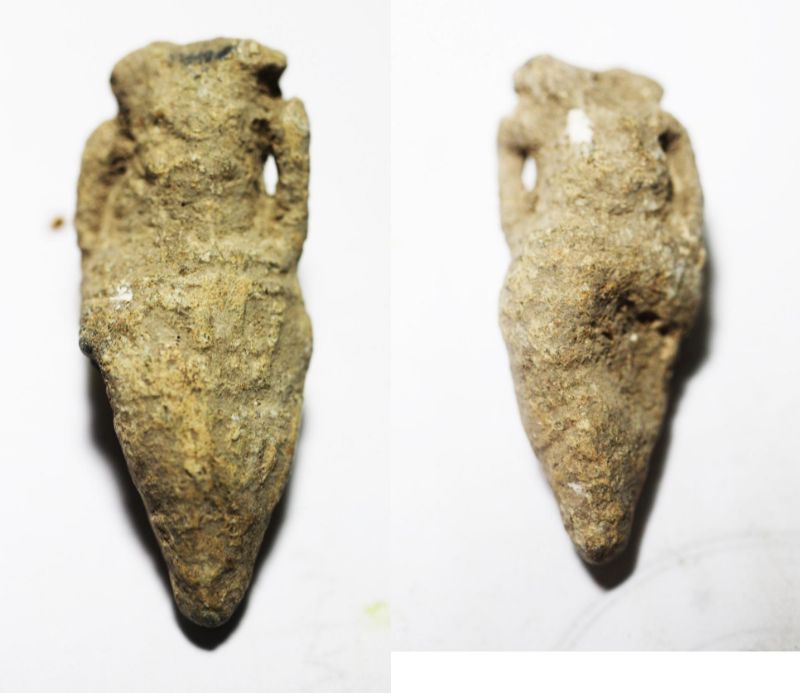 Miniature Roman Holy Land 1st–3rd century AD lead pilgrim's votive amphora. Inscribed (Traces)